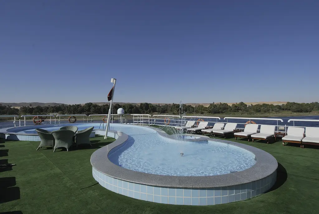 Le Mövenpick MS Hamees offre un design contemporain et élégant, complété par un service exceptionnel et des équipements haut de gamme. Ses cabines spacieuses offrent une vue imprenable sur le Nil, ce qui en fait le bateau idéal pour votre voyage en Égypte. Vous pouvez vous détendre dans la piscine, lire dans les salles de jeux et de lecture, ou déguster une boisson rafraîchissante au Lounge Bar ou sur le pont supérieur. Profitez du confort d’une croisière de luxe sur le Nil tout en étant entouré des sites les plus impressionnants d’Égypte.