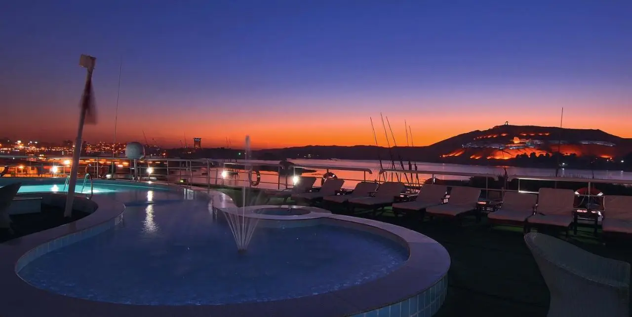 À bord de ce luxueux bateau de croisière, vous naviguerez de Louxor à Assouan ou d’Assouan à Louxor, avec des installations de classe mondiale, un service attentionné et un mélange unique de confort et d’élégance. Que vous vous détendiez sur le pont supérieur, que vous vous régaliez d’un repas raffiné ou que vous exploriez les merveilles antiques de l’Égypte, chaque instant de ce voyage sera rempli de magie et de souvenirs.