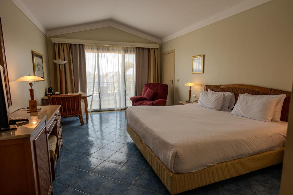 It is located between the mountains of the Red Sea and the Gulf of Aqaba and is 85 km from Sharm el-Sheikh International Airport from its advantages that it has an outdoor swimming pool, tennis court, disco and 5 different bars and also you can enjoy the spa and play billiards or basketball There is also a fitness center (gym) and in the interest of the hotel to enjoy it may be available to enjoy the game of volleyball and windsurfing and you can try rowing boat ride There are also beach handball courts as for rooms The hotel is very comfortable as it offers a flat-screen TV, minibar and private bathroom you can follow the news of the world via the Internet where