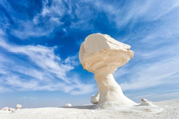 ▪️ Continue driving to the white desert protectorate to see the distinctive rock formations shaped in the form of giant mushrooms or pebbles is unequaled in any desert in the world or even camel and chicken.